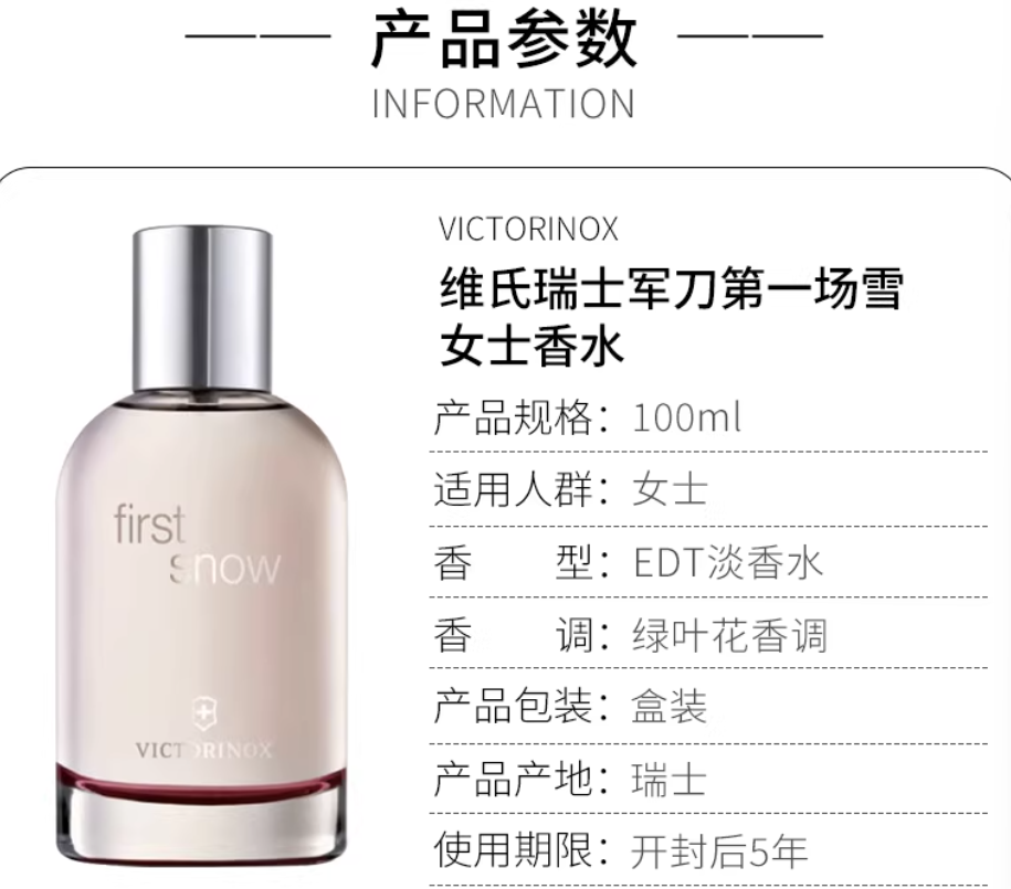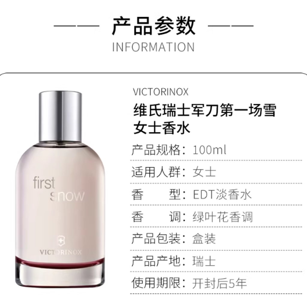 VICTORINOX維氏第一場雪 女士淡香水EDT 100ML 綠葉花香調